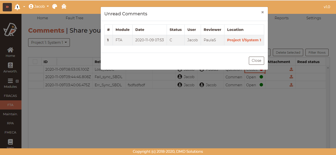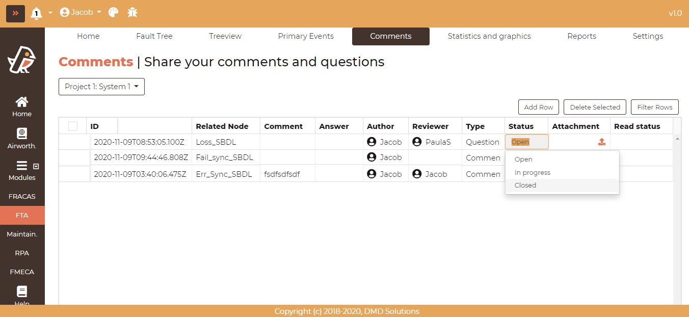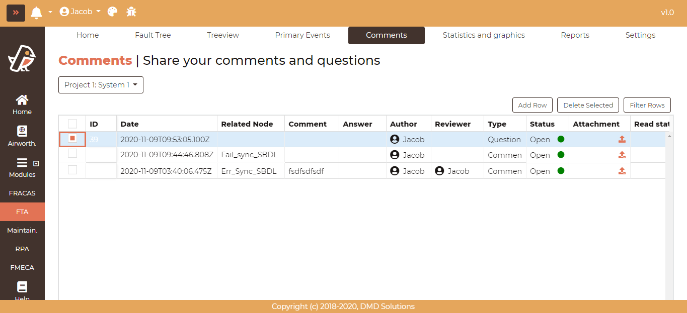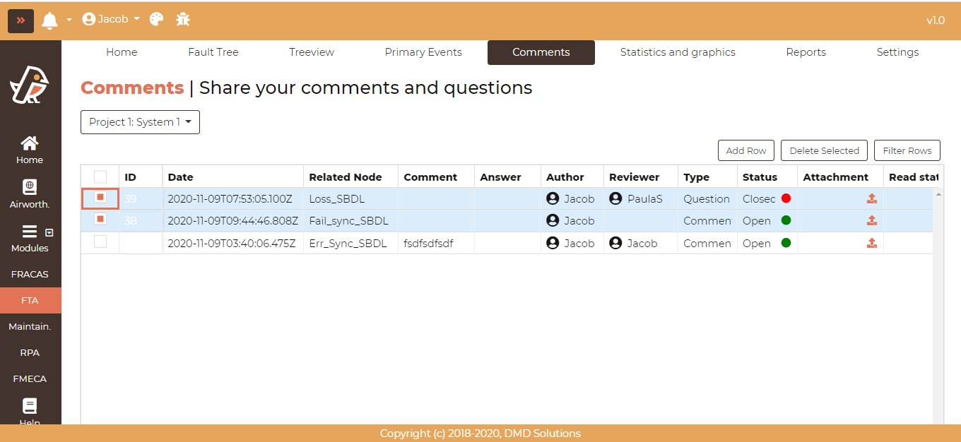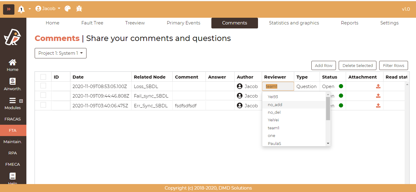 The Comments page allows to the different users to make comments on each node of the FTs.