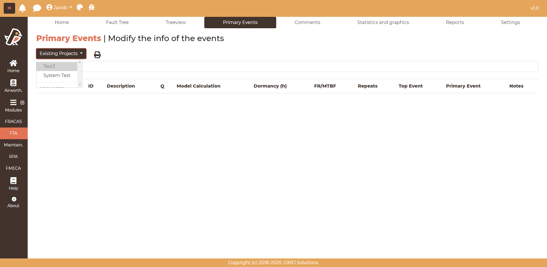 By clicking on the Existing Projects dropdown, all the available systems will be shown. Click on one system to load a dropdown with the system’s fault trees.