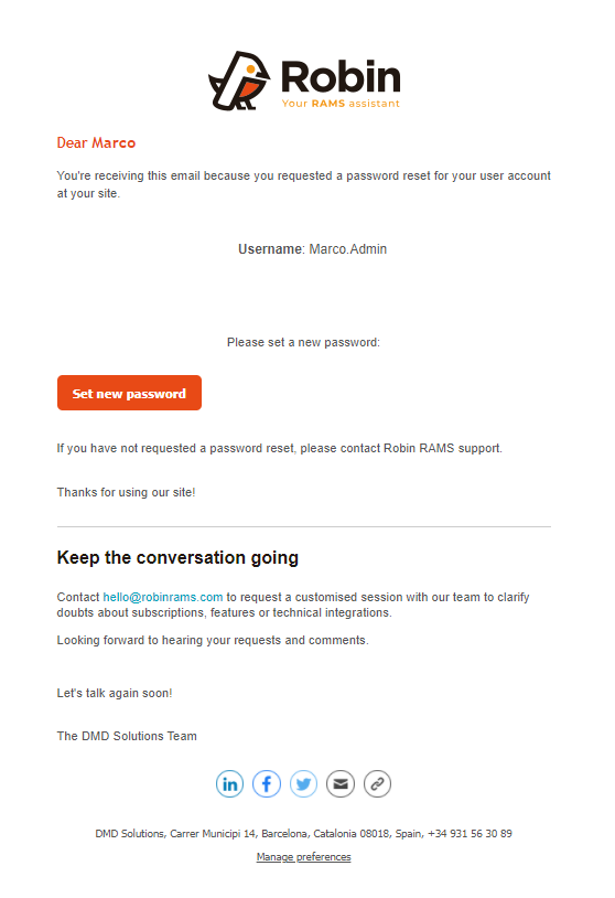 Both of these ways take the user to the same form, shown above, where one simply has to submit their username or email. From this they will receive an email that will allow them to change their password (shown below). If the user believes they have not received it, the email was most likely sent to spam.