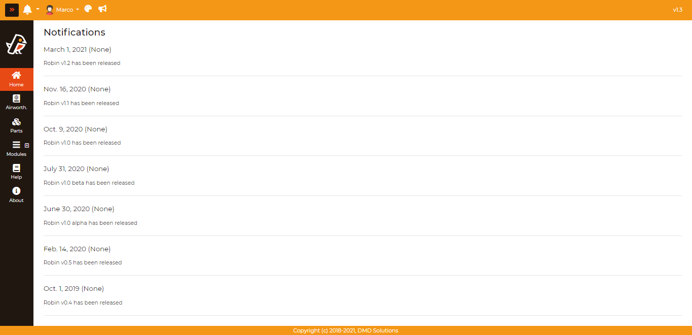 Notifications shows you general news updates about Robin, such as update releases.