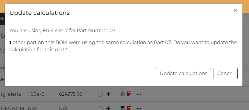 See calculation parameters: After clicking this button, the tool will show all the parameters used to compute the reliability of the parts.